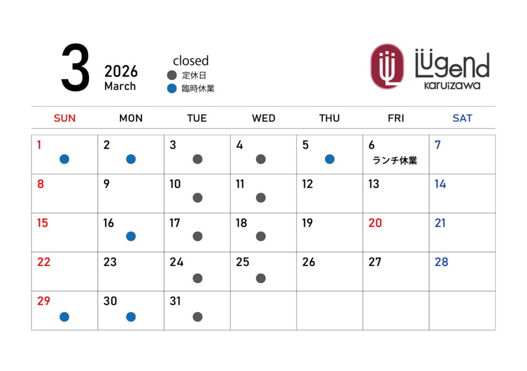 2026年2月、3月の営業カレンダーです。